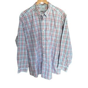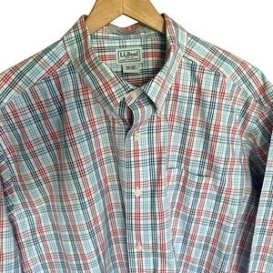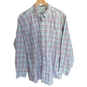 LL Bean Men's Wrinkle-Free Kennebunk Traditional Fit red,white & blue 17 1/2 -34