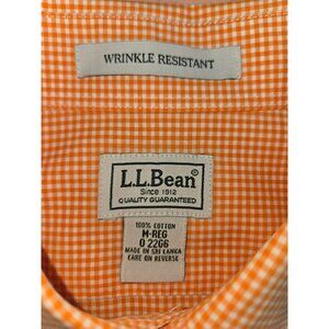 L.L. Bean Mens Wrinkle-Resistant Orange Check Dress Shirt Medium-Reg
