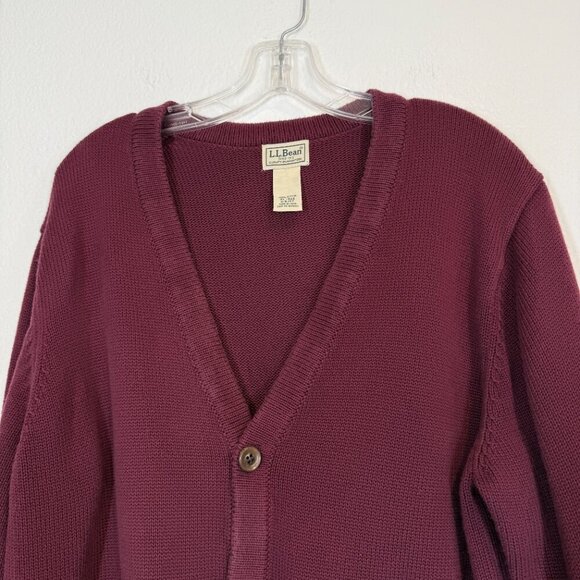 LL Bean Men’s XL Burgundy Cotton Cardigan Sweater Button Front Pockets Classic