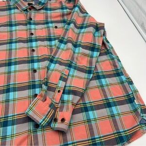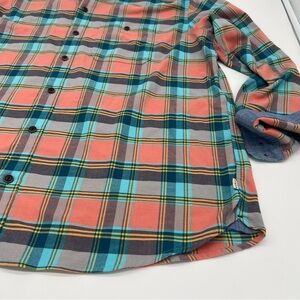 L.L. Bean Men’s XL Plaid Button-Up Shirt – Coral & Teal – Traditional Fit