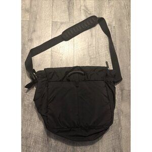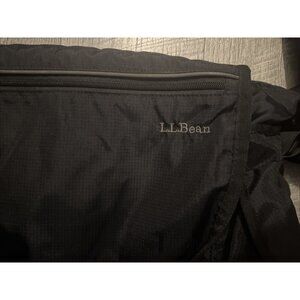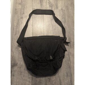 LL Bean black nylon messenger/laptop bag with top handle and carrying strap. Side pockets and inner padded laptop pocket. Great, clean overall condition. No rips or holes seen. Minimal use. Smoke free/pet free. Approximate measurements are 17"x15'x7". Please see all photos for details with measurements, and ask any questions. Orders are shipped out daily, Monday – Friday.