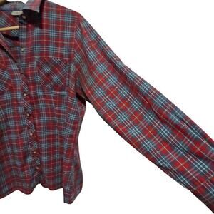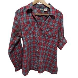 LL Bean Midweight Flannel Plaid Western RusticButton Up Shirt Women's Medium