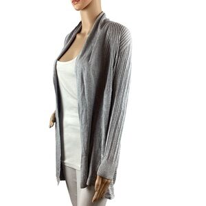 L.L. Bean Mixed Knit Open Front Cardigan Size M Gray