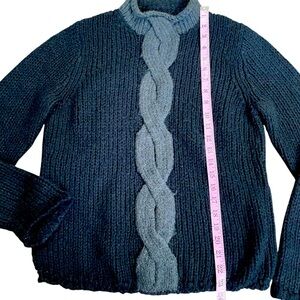 LL Bean Mohair/Wool Black/Gray Cable Knit Sweater Sz M