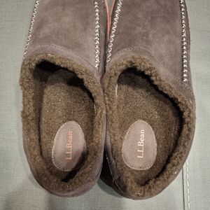 L.L. Bean Mountain Brown Suede Scuff Fleece Slippers Men Size 11