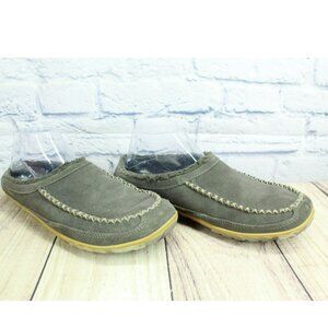 LL Bean Mountain Gray Suede Nonslip Comfort Fleece Lined Slipper Scuffs Size 8 M