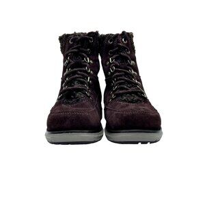 Ideal for cold weather, these L.L. Bean Mountain Lodge Boots feature durable suede and sherpa insulation, providing warmth and comfort for outdoor activities.