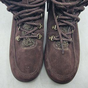 LLBean Mountain Lodge Womens 8.5 Brown Fleece Collar Insulated Boots Primaloft