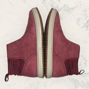 L.L. Bean Mountainside Toggle Boots Red Nubuck Leather Ankle Pull On Women’s 7