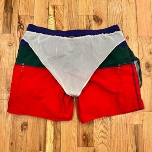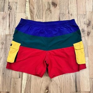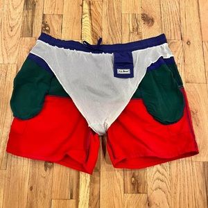 Vibrant men's shorts by L.L. Bean. Features bold color blocks. Convenient front pocket.