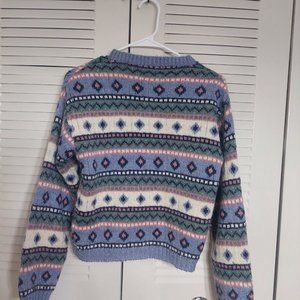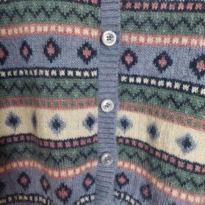 Stylish L.L. Bean cardigan. Features a multicolor pattern. Button-up front. Perfect for layering.