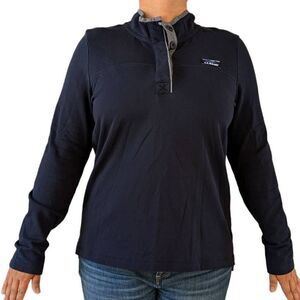 L.L. Bean Navy Blue Chambray Rugby Quarter Button Down Collar Henley Sweatshirt