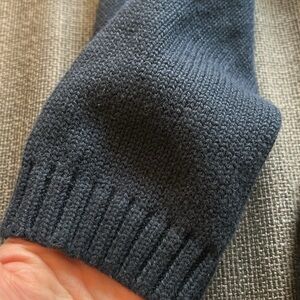 LL Bean Navy Blue Chunky Cable Knit Cardigan zipper Sweater 100% Cotton Size M