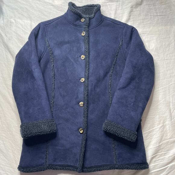 L.L. Bean Navy Blue Faux Suede Sherpa Lined Jacket Coat Sz Medium Women's