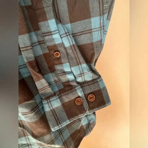 LL Bean Navy Blue Plaid Twill Button Shirt Traditional Fit L