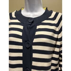 LL Bean Navy Blue White Yellow Striped Cardigan Button With Pockets L
