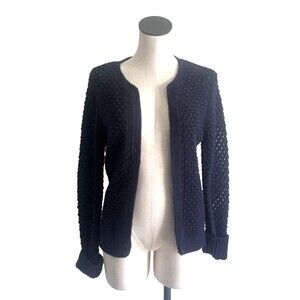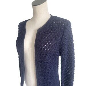 L.L. Bean Navy Blue Wool Rabbit Hair Blend Open Knit Cardigan Sweater Medium