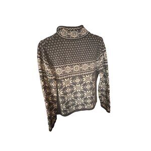 Vintage LL Bean Nordic Fair Isle Cardigan in medium size, featuring a button front design. Crafted from a warm blend of cotton and lambswool, it ensures comfort and longevity.
