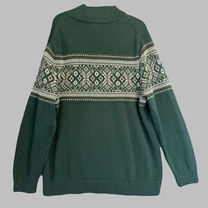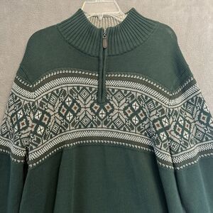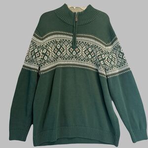 L.L. Bean Nordic Fairisle 1/4 Zip Pullover Sweater Mens XL Green Cotton 503348