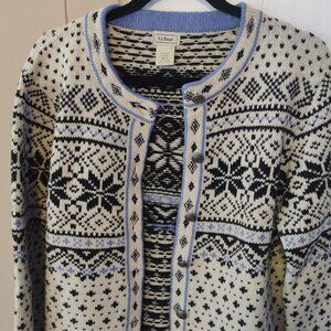 LL Bean Nordic Lambswool Button Down Sweater. Size large, in EUC. Nice and warm perfect for winter. All buttons are attached and they are gorgeous heavy metal buttons.
