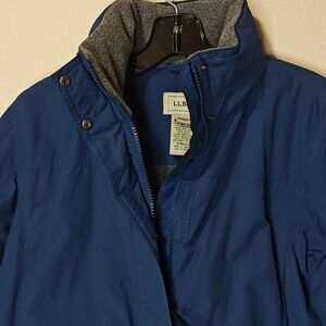 LL Bean Nylon Full Zip Jacket Barn Coat 0BDX2 Blue Womens Med Reg Fleece Quilted