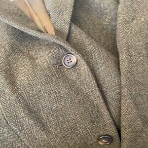 L.L. Bean Olive Green 3 Buttons Herringbone Pattern L/S Blazer Jacket - Size12