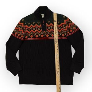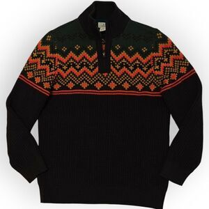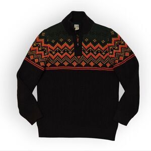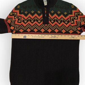 Experience warmth and style with this L.L. Bean zip-up sweater, featuring a classic Nordic pattern in green and brown. The thick knit ensures comfort during cold weather, while the vibrant design adds a touch of winter charm.