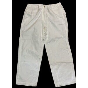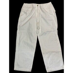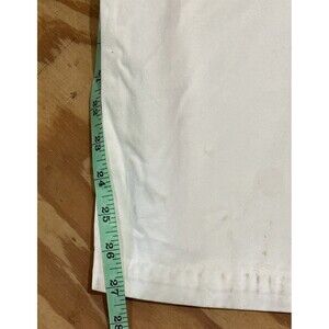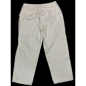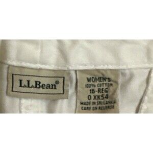 Elevate your wardrobe with these LL Bean Original Fit 16 Reg Capri Pants. The pants feature a high-rise straight leg crop design with a flat front and zip closure. They are made of durable cotton canvas material and come in a classic white color with a solid pattern. The pants have pockets for convenience and are machine washable for easy care.
