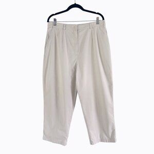 LL Bean Original Fit Capri Pants Sz16 Khaki Cotton Pleated Preppy Casual Classic