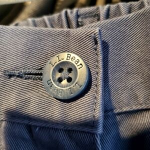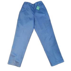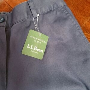 LL Bean Original Fit, Size 8, Blue Gray color, one back drop in pocket with button closure, two front hand pockets, zip and button front closure, five belt loops, elastic waist in back, 100% cotton. New with tags. measurements are approximate. Questions, just ask.
