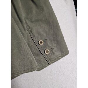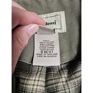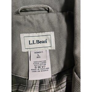 The LL Bean Outdoor Women's Lined Blazer Jacket in size L features a classic double-breast design with three buttons, making it a stylish and functional outerwear option. Crafted from durable cotton, this green jacket offers a versatile and timeless style for women. The jacket has a regular fit and is designed to provide both comfort and warmth, making it a practical choice for outdoor adventures or everyday wear. With its quality construction and traditional design, this blazer jacket from LL Bean is a must-have addition to any woman's wardrobe.