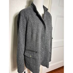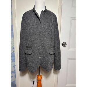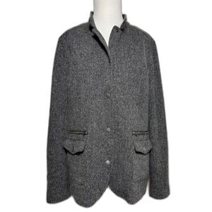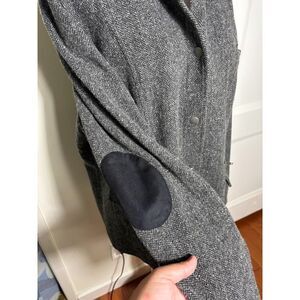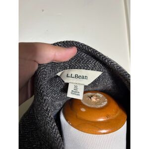 L.L. Bean Overcoat Jacket Wool XL Gray Elbow Patches Equestrian Prep Old Money
