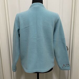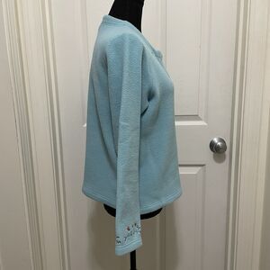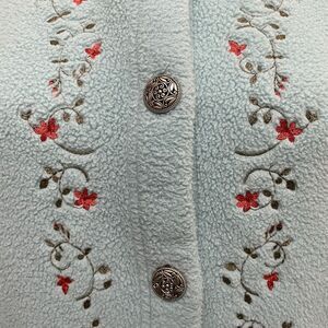 LL Bean POLARTEC Button Up Cardigan Sweater Blue Embroidered Fleece Womens Small
