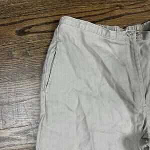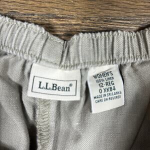 LL Bean Pants Women 12 Brown 100% Linen Elastic Waist Lightweight Coastal Resort