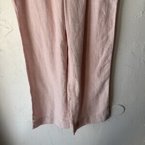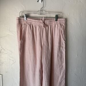 LL Bean Pants Womens 10 Petite Pink Linen Wide Leg Drawstring Relaxed Casual