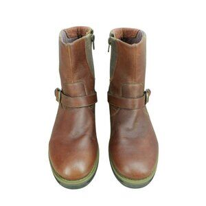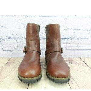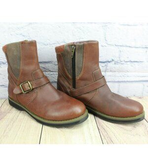 LL Bean Park Ridge Brown Leather Side Zip Buckle Ankle Casual Boots Size 7 M