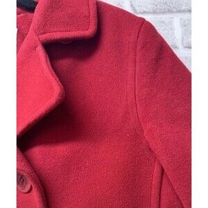 LL Bean Peacoat Jacket womens Petite Sz 8 Red Lambswool Button Front Vintage