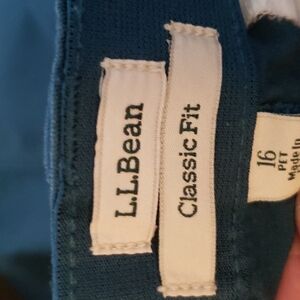 L.L. Bean skirt. Made of evergreen 98% cotton, 2% spandex fabric. Called "the perfect fit" due to the elastic band inside the waistband. 2 slash pockets and 2 back pockets.