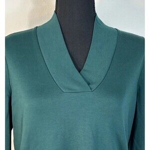LL Bean Pima Shawl Long-Sleeve Dark Green Cotton Tee Size Medium (10/12)