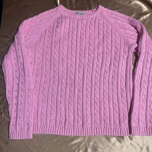 L.L. Bean Pink Crew Neck Cable Knit Sweater