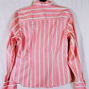 L.L. Bean Pink & Green Vertical Stripe Button Down Top Size S