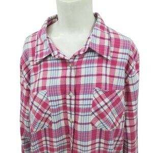 LL Bean Pink Plaid Flannel Long Sleeve Button Up Shirt Size XL Petite Purple