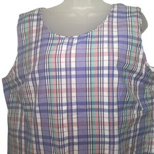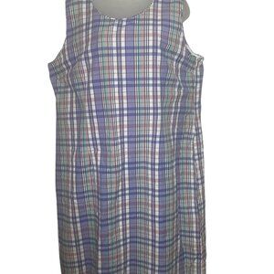 L.L. Bean Plaid Cotton Shift Dress Size 20 Sleeveless Knee Length