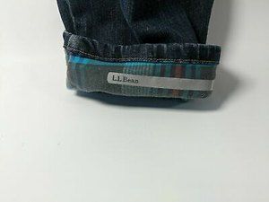 LL Bean Plaid Flannel Lined Wicket Cool Jeans Women's Relaxed Sz 8R Blue Warm 90.