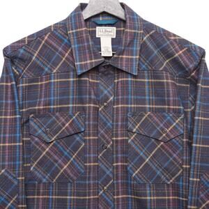 L.L. Bean Plaid Flannel Shirt Western Style Snap Front Multicolor Men's Medium M
