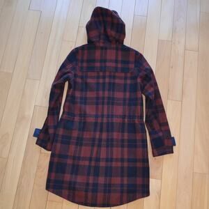LL Bean Plaid Wool Coat Jacket Size Small Red and Navy Blue Size Small