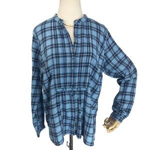 L.L. Bean Plaid Flannel Shirt Pintuck Top Size Medium 1/2 Button Pullover