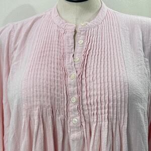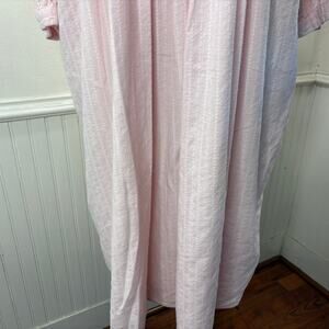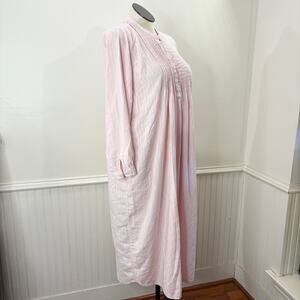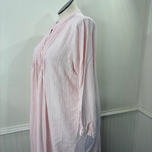 LL Bean Plus Size 1X Nightgown Flannel Dobby Pintuck Pink White Cottage 205465