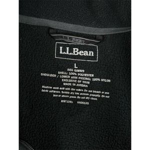 This LL Bean Polartec women's jacket is a versatile addition to any wardrobe. The full-zip fleece sweater jacket in black and gray features accents such as an embroidered logo and zipper, creating a classic outdoor look. The jacket is made of polyester and is designed with long sleeves and a regular fit. It has a solid pattern and a zip closure, making it suitable for travel, casual, and workwear occasions. The jacket is available in size L and does not have any personalization options. It is not a vintage item, and it was not handmade. The jacket is perfect for fall, winter, and spring seasons, and it was manufactured in Jordan.