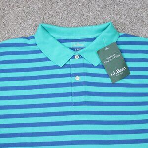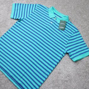 L.L. Bean Polo Shirt NWT Mens Large Green/Blue Premium Double L S/S Pullover